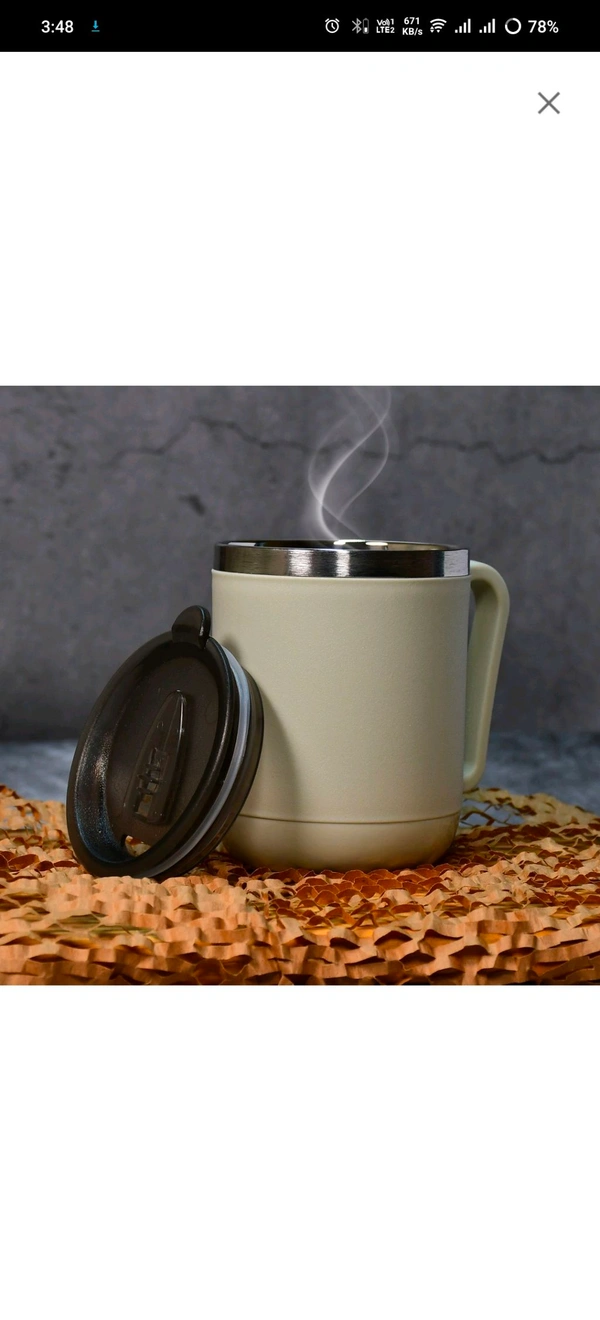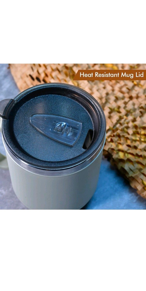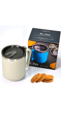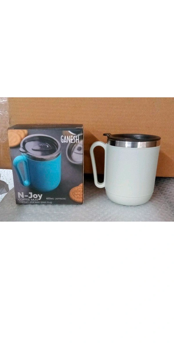Ganesh Premium Stainless Steel Coffee Mug with heat resistant mug lid. Approx 400Ml mug.