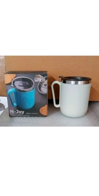 The unique style of steel tea coffee mug is double wall mug made of virgin plastic and non magnetic stainless steel with elegant look and comfortable handle.
